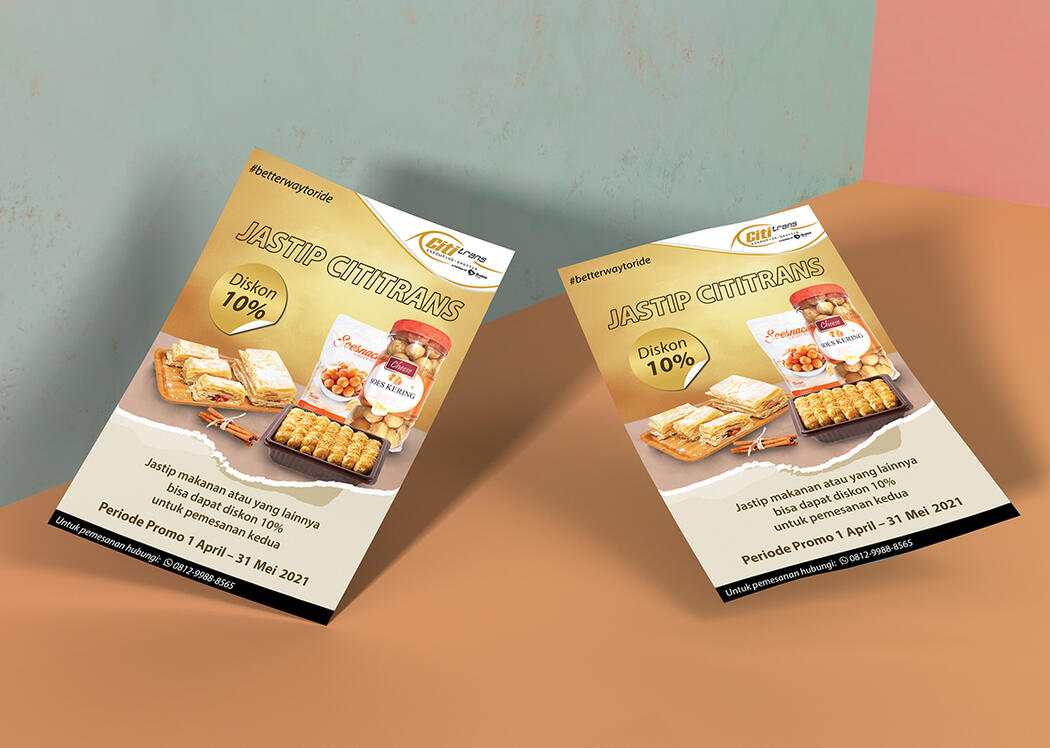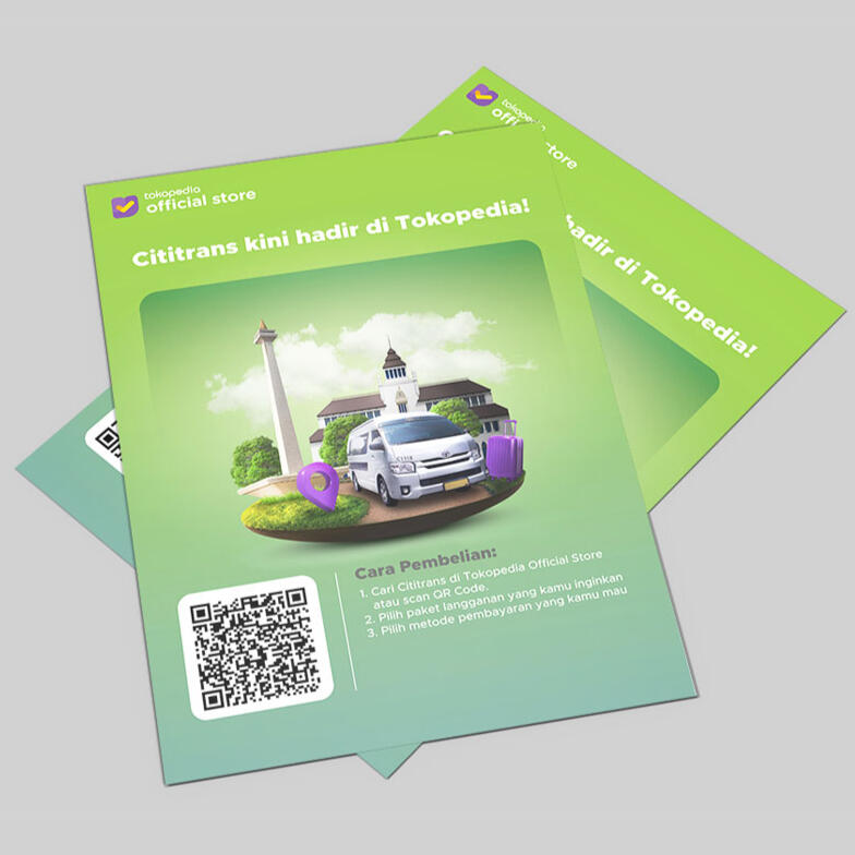 Digital imaging of a flyer that was made in a collaboration of two companies, Cititrans and Tokopedia. The color green was is mainly used to bring out Tokopedia's branding, also using a picture of two main monuments of Jakarta-Bandung.