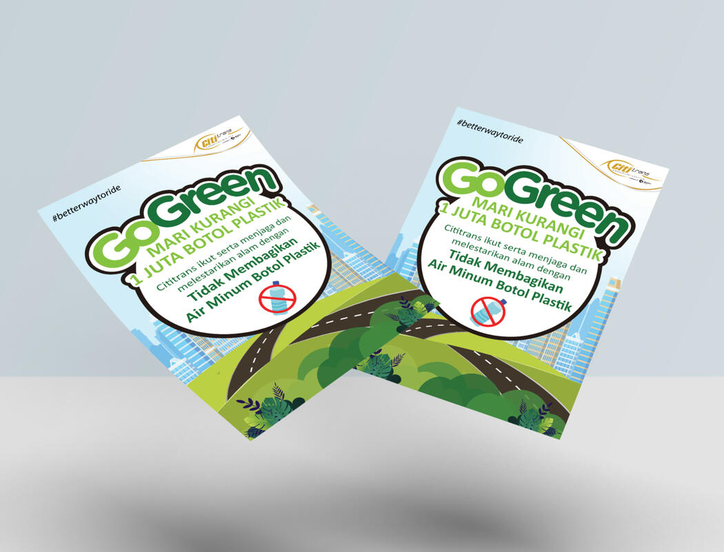 A vector illustration that features a Go Green theme. The flyer help to spread notice about the company's eco friendly system, then it was distributed to customers and put on walls as signs.