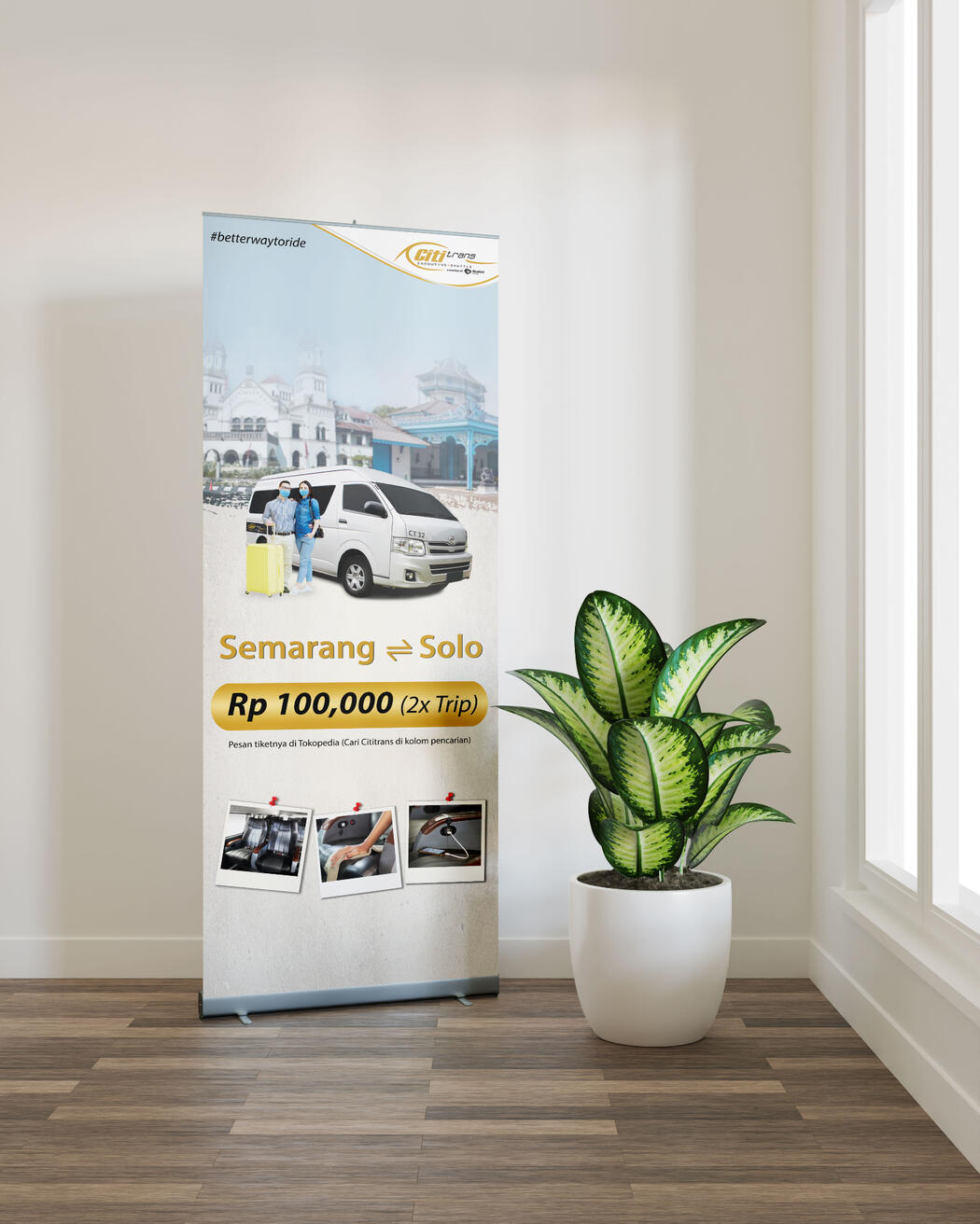 X-Banner that was made for Semarang Solo discount promotion. The banner consist pictures of the vehicle interior, showcasing it's benefits.